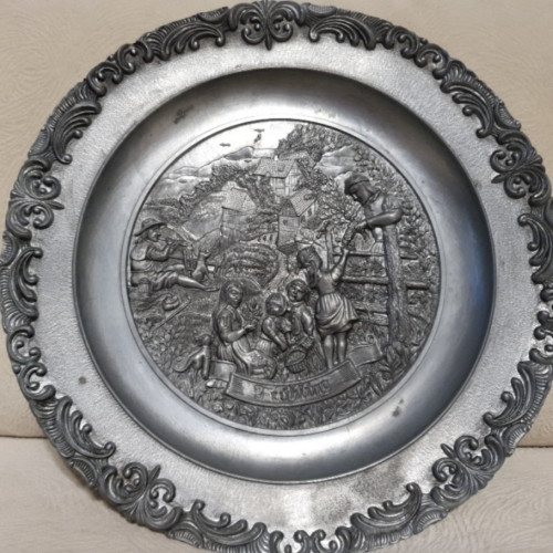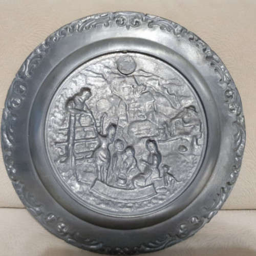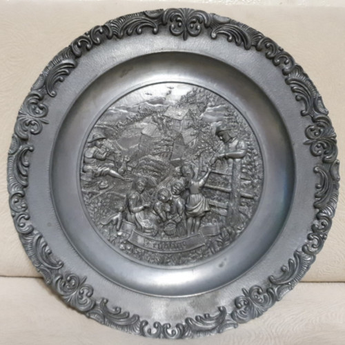 Антикварная настенная оловянная тарелка Совместная жизнь